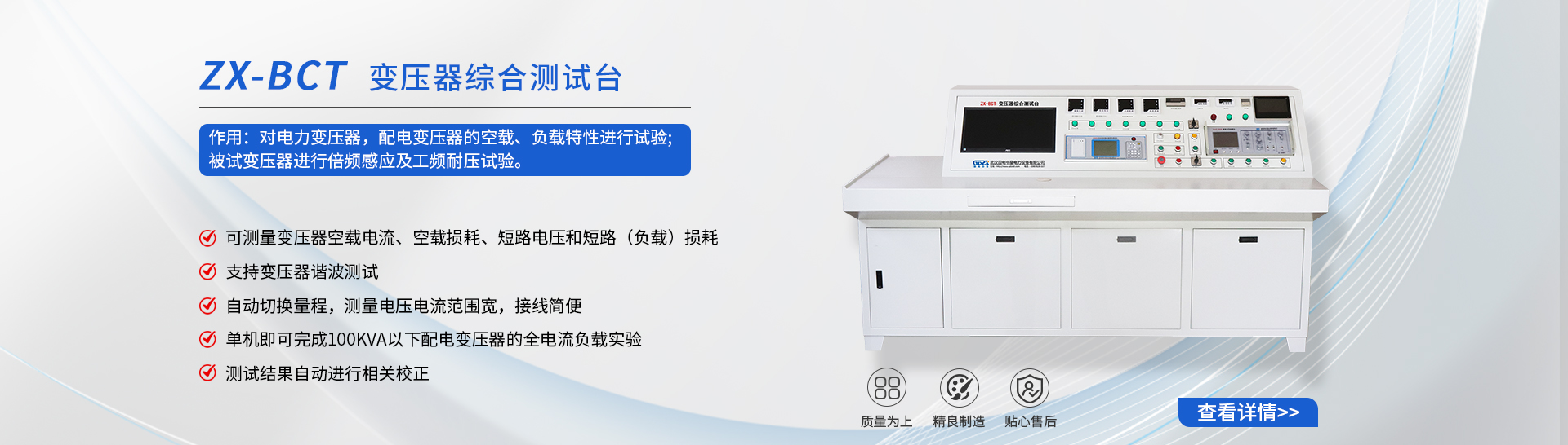 武漢國電中星電力設備有限公司是一家專業從事電力、電氣測試設備,集研發、生產、經營于一體的高新技術企業。公司擁有雄厚的技術人才,并通過與武漢各大院校、科研院所的廣泛合作,向全國電力行業提供大量的優質產品與完善的售后服務。公司以產品質量為企業的核心。以市場導向,以滿足用戶為主題.得到廣大用戶贊譽。